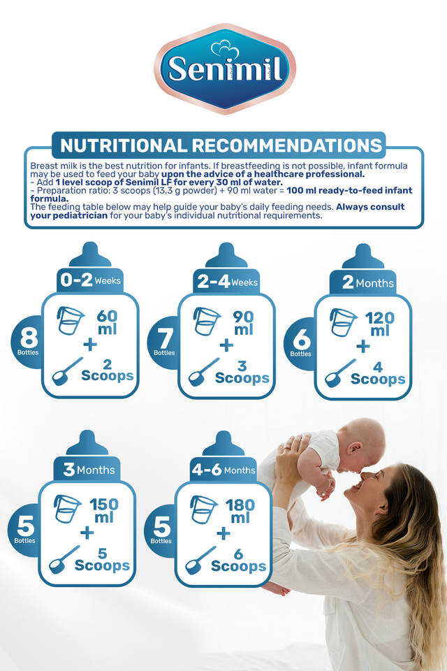 Lait infantile sans lactose Senimil LF en poudre 400g, sans huile de palme, DHA, GOS, FOS, pour l'apprentissage de l'alimentation des nouveau-nés