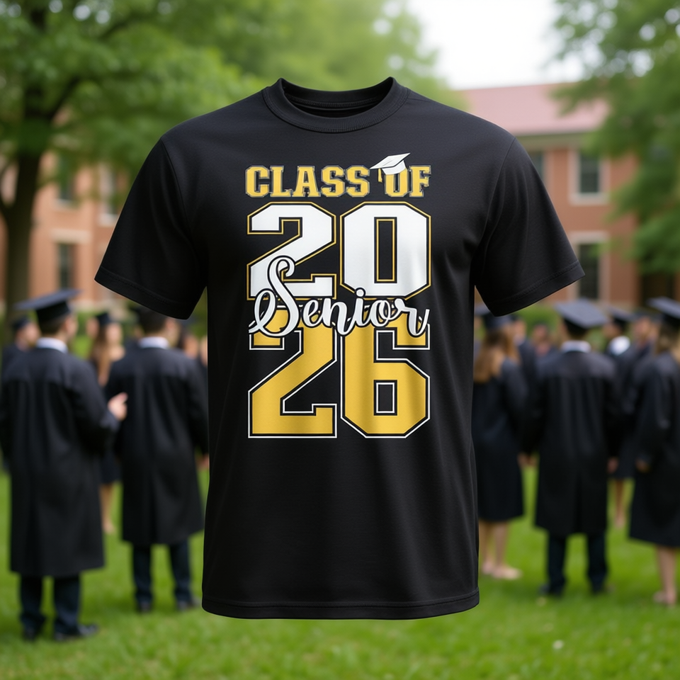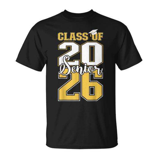 T-shirt de remise de diplôme pour la promotion 2026, design or et blanc, taille adulte unisexe