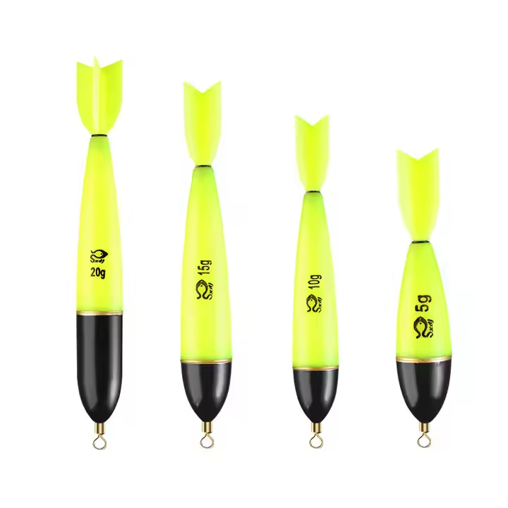 ABS sensible à double usage 10g 15g 20g flotteur de pêche en roche longue portée queue de fusée glissière lumineuse en plastique pour la pêche de jour et de nuit
