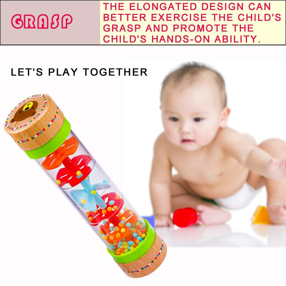 Bâtons de pluie sensoriels Mini secousse musicale gouttes de pluie perlées retourner et regarder les perles colorées Rainmakers en bois