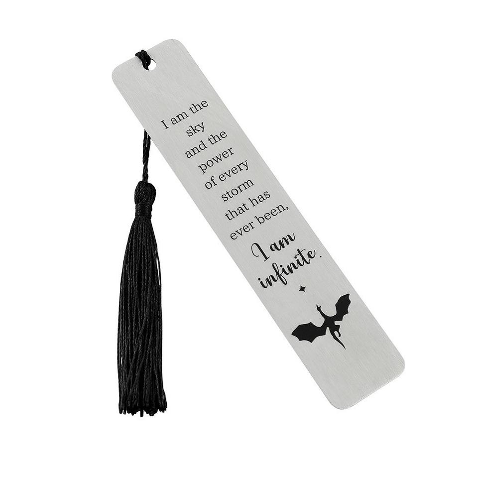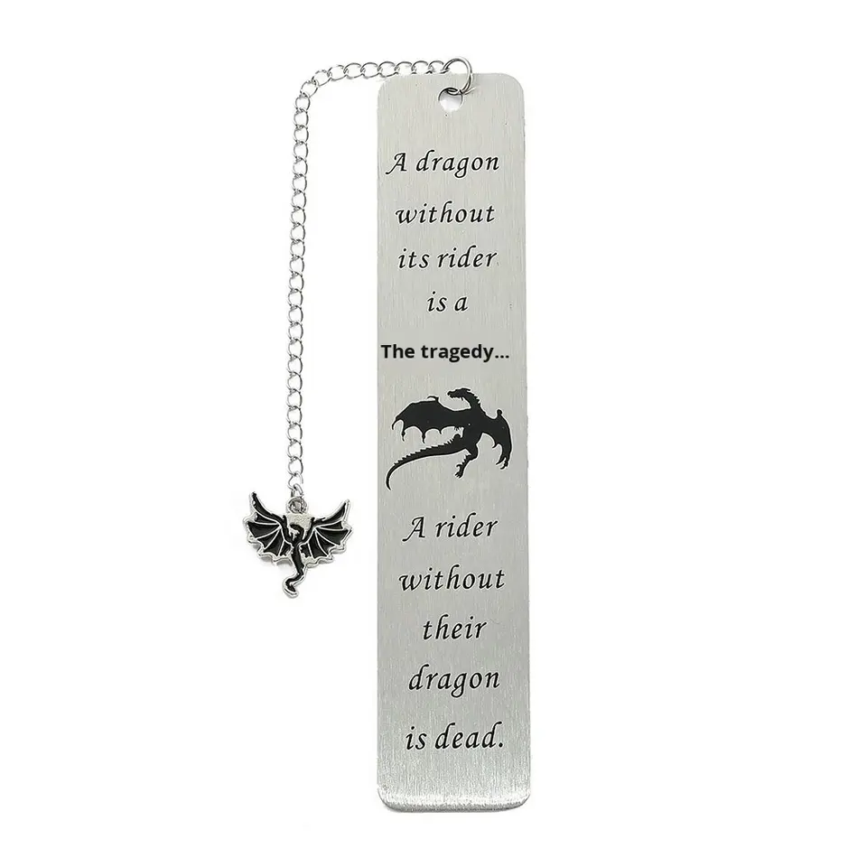 Marque-page Dragon à Quatre Ailes en Acier Inoxydable Sentance, Style Européen et Américain, avec Pompon Noir, Fait Main, Impression Numérique Écologique