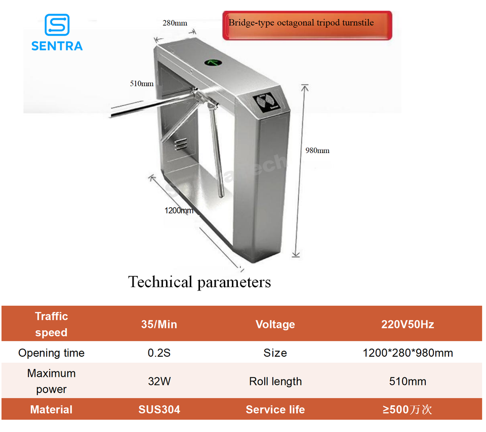 Code QR Sentra-ST01 pour entrée en acier inoxydable, sécurité de la salle de sport, porte tournante à trois pieds