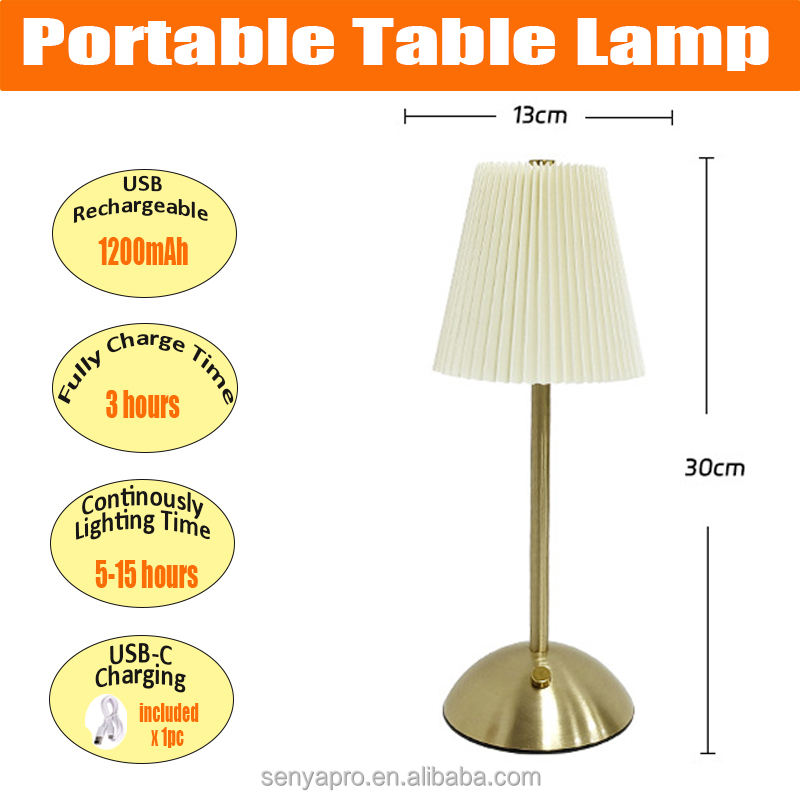 Lampe de table en tissu Senya-Pro avec batterie rechargeable intégrée, lumière LED de bureau à intensité variable multicolores, idéale pour les événements de mariage
