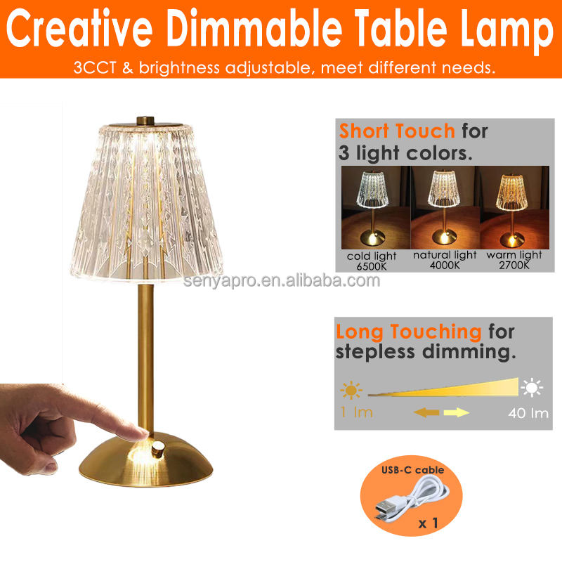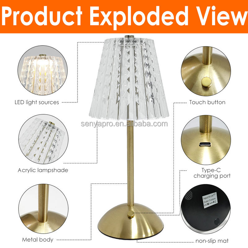 Lampe de table sans fil rechargeable Senya-Pro en or, lampe de bureau LED à intensité variable tactile pour restaurant, hôtel, bar, décoration de mariage, dîner
