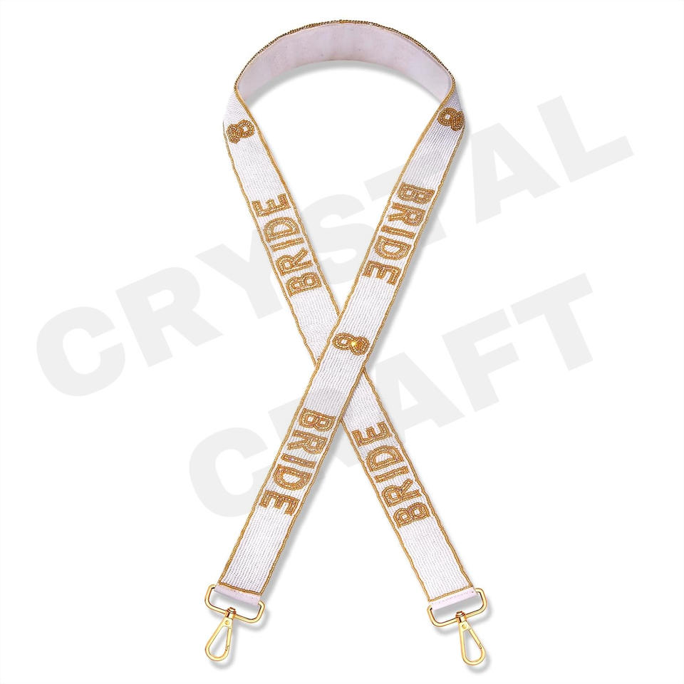 Sangles de sac à perles de rocaille en or blanc personnalisées à paillettes 'Hook Em Horns' Accessoire à la mode Sangle de sac à main perlée