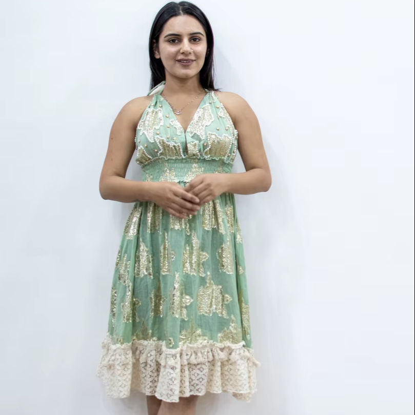 Sage Green Midi Summer Dress V-neck Sundress Romantic Lace Trim Beach Party Gown Digital Printing