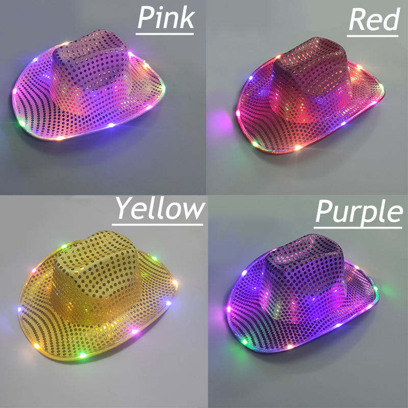 Chapeau de Cowboy lumineux à paillettes avec LED Chapeau de Cowboy lumineux Glow Club Party Chapeaux de Cowboy pour Costume de Bar