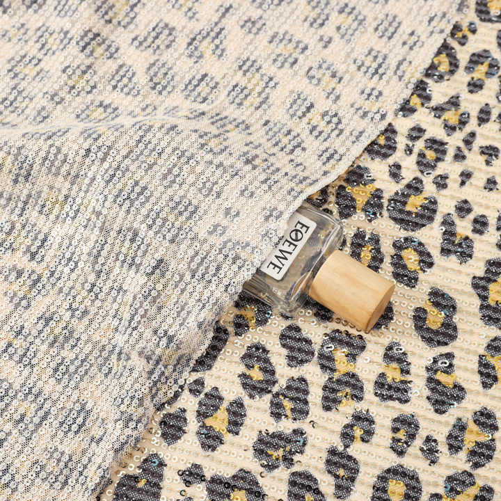Sequin Printed Leopard Animal Print Embroidered Slub Velvet Fabric with Spandex Polyester for Dresses Shirts Accessories