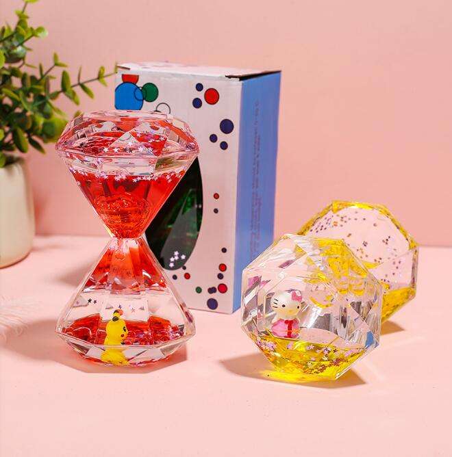 Paillettes diamant dessin animé flottant gouttelettes d'huile flash boule sablier ameublement décompression déversement d'huile jouets pour enfants