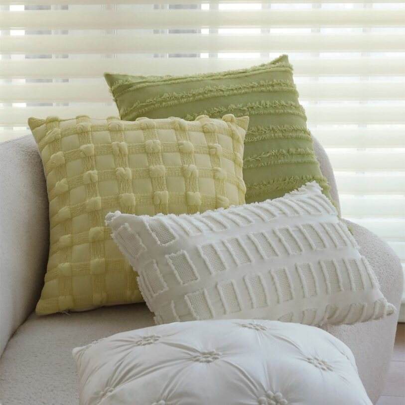 Collection Serenity : Ensemble de 2 coussins décoratifs modernes texturés en peluche avec motifs matelassés rayés et capitonnés
