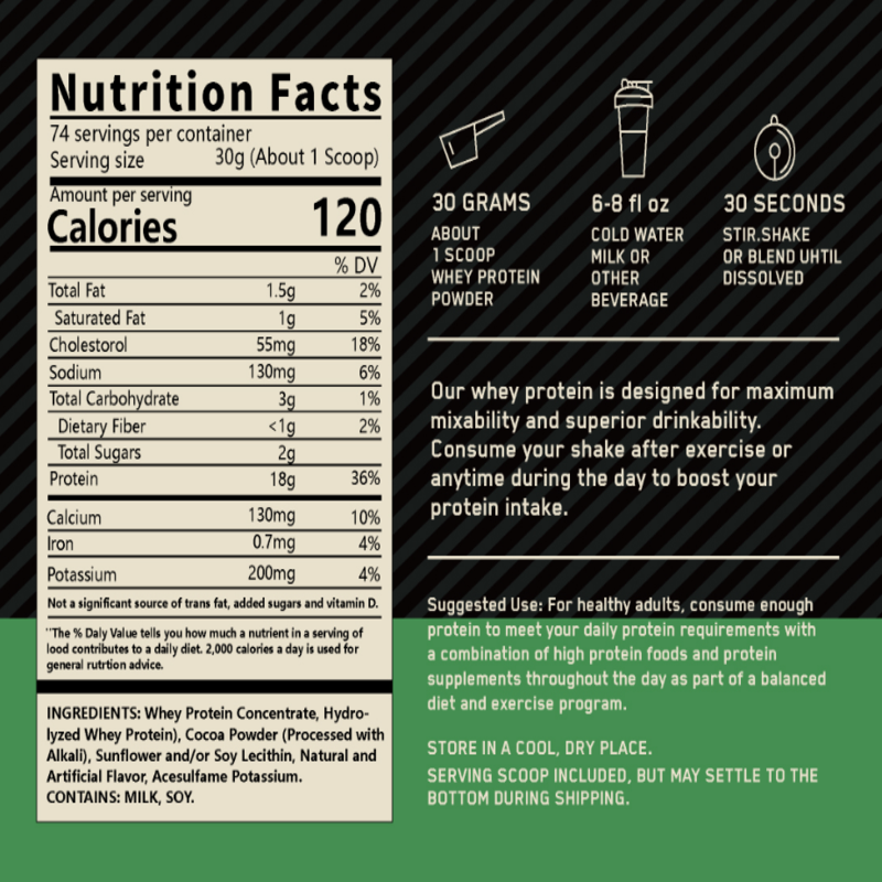 Poudre de protéine de lactosérum Gold Standard 100% | 24g de protéines 5.5g BCAA | Soutien musculaire et récupération |