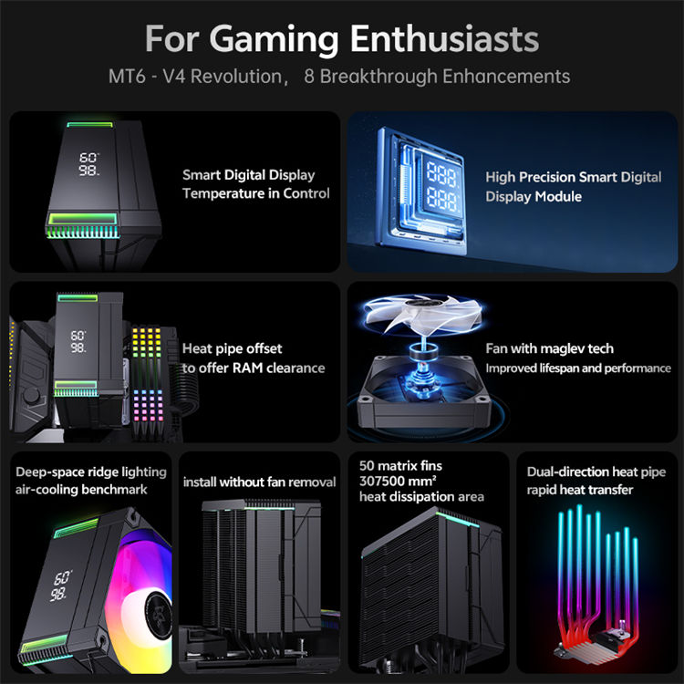 Système de refroidissement pour serveur, ventilateur de refroidissement pour ordinateur, ventilateur LED ARGB blanc, ventilateur de refroidissement par air pour PC, refroidisseur de processeur pour jeux avec affichage numérique