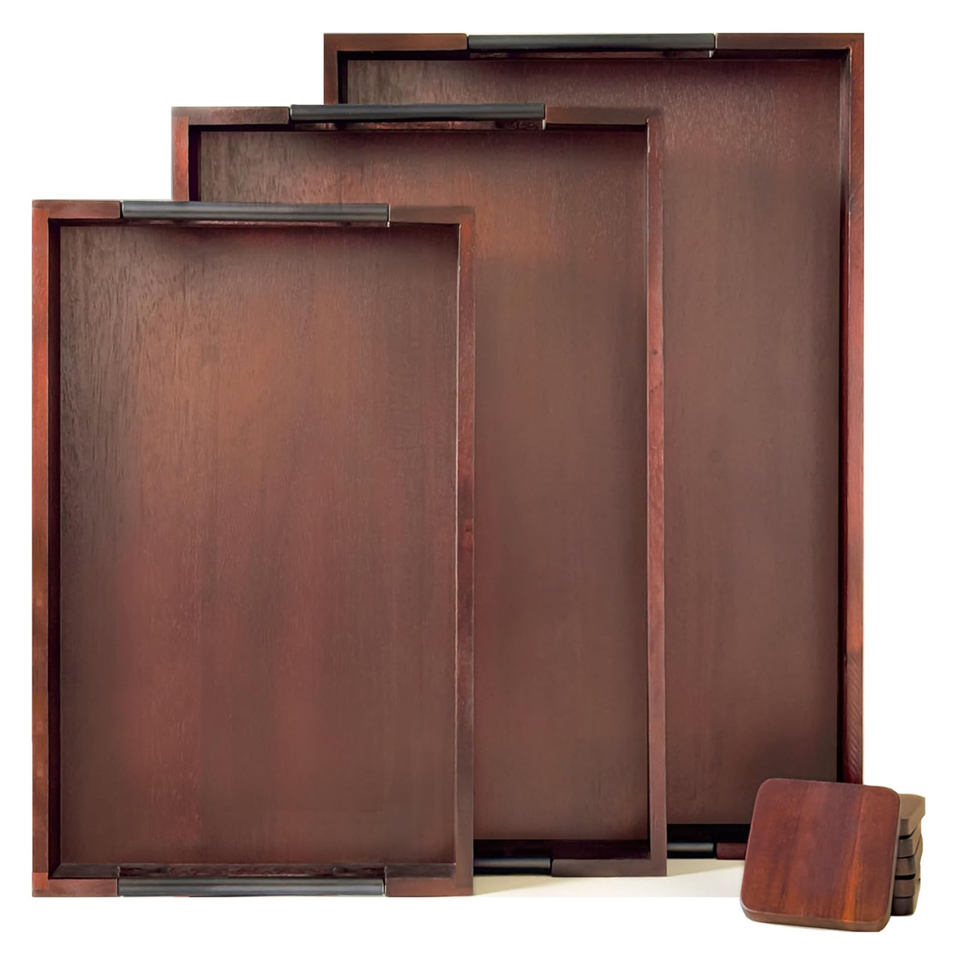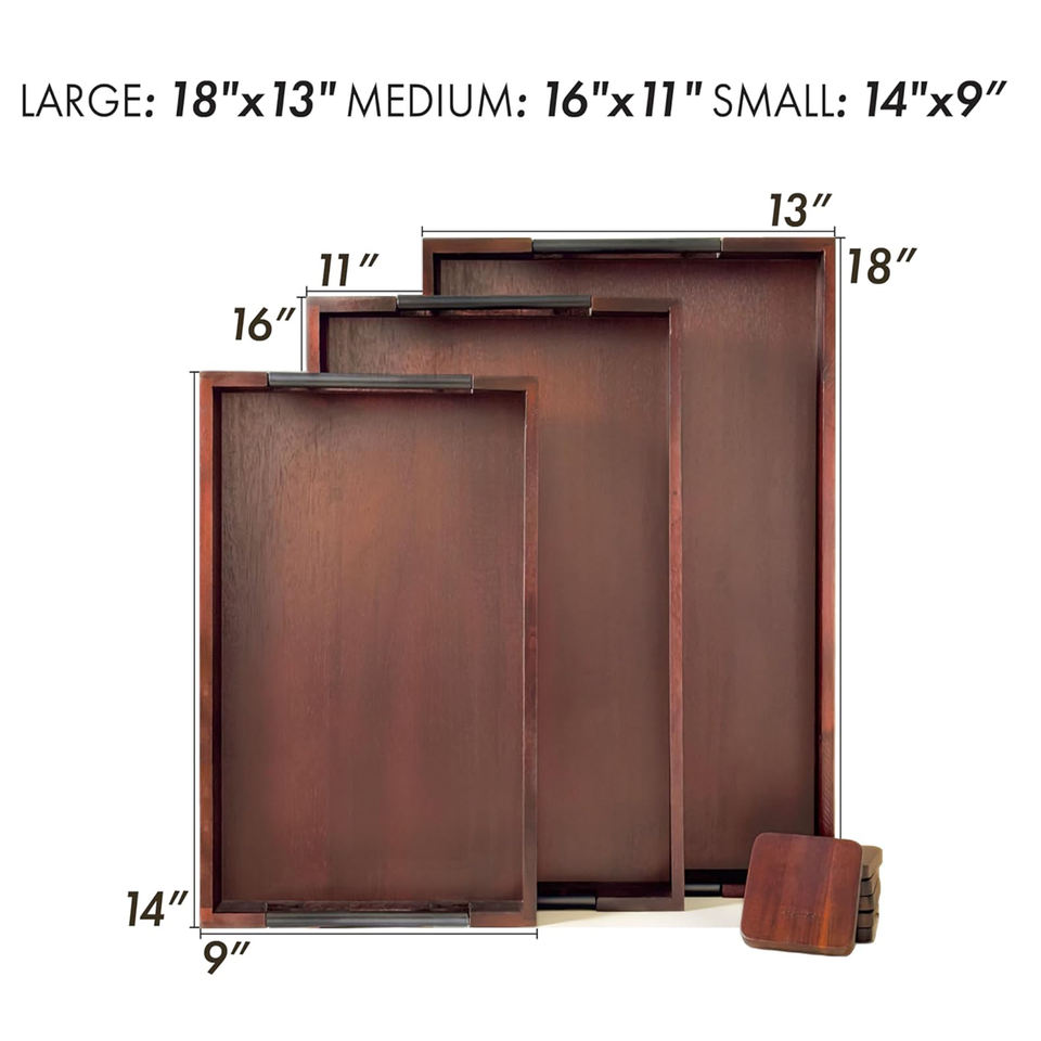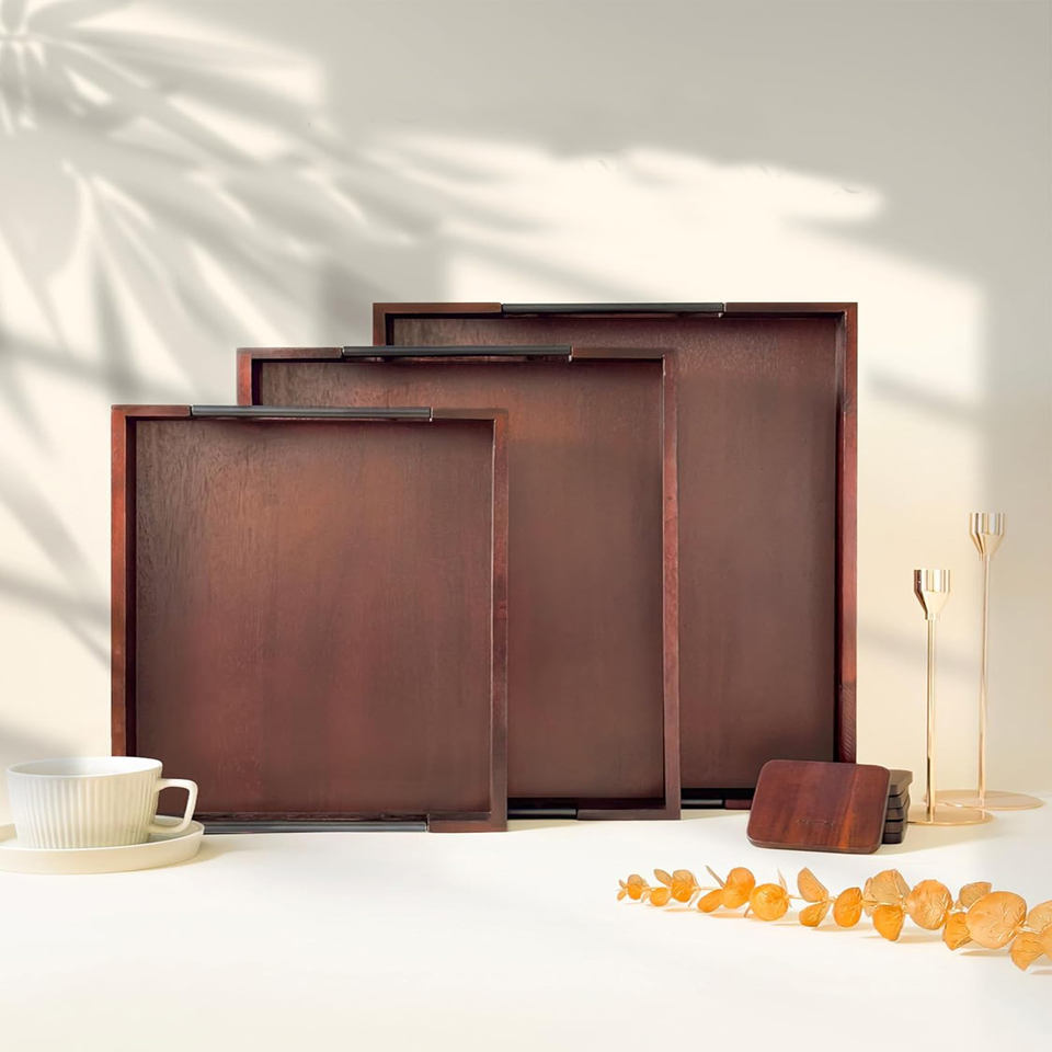 Product Name:Wooden Serving Tray With Steel Handle l Set of 3