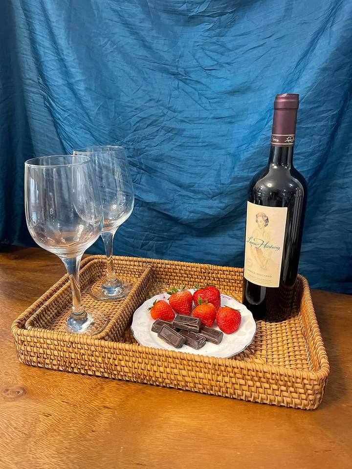Plateau de service en rotin tressé fait main – Ensemble de plateaux de service en rotin pour la maison et les cafés