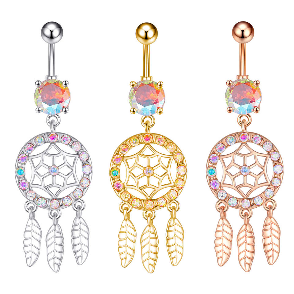 Ensemble 10 anneaux de piercing en zircon coloré attrape-rêves en acier inoxydable 316L anneau de nombril en or bijoux pour mariage
