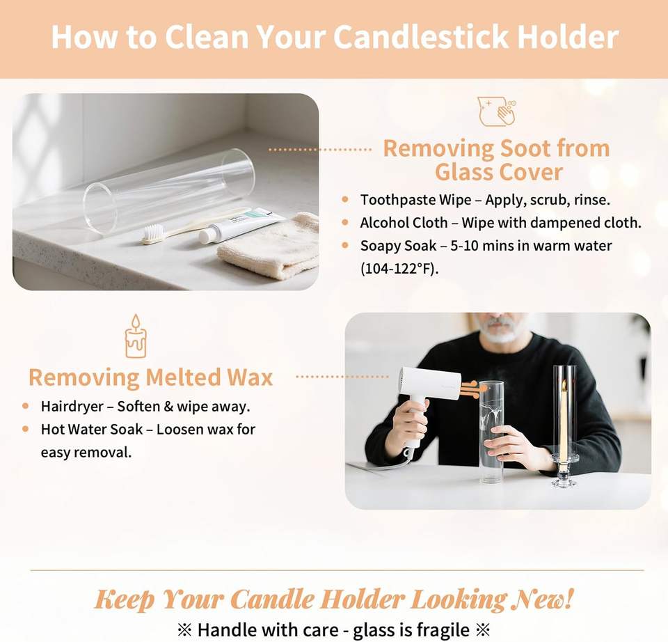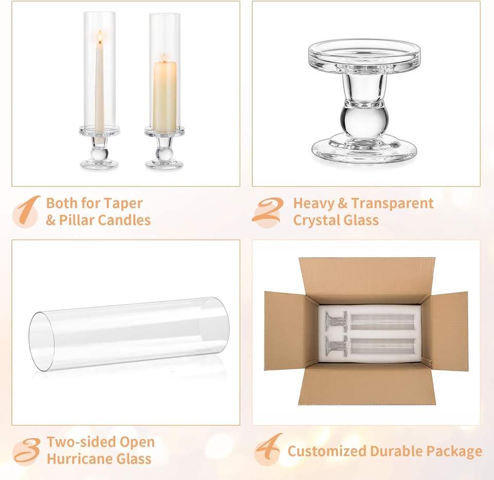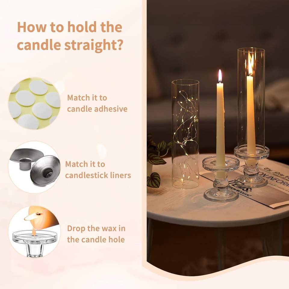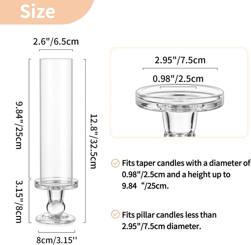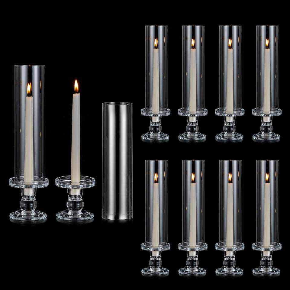Ensemble de 10 bougeoirs en verre coupe-vent sans fond pour décoration de table de mariage, de Noël et de fêtes, pour bougies coniques