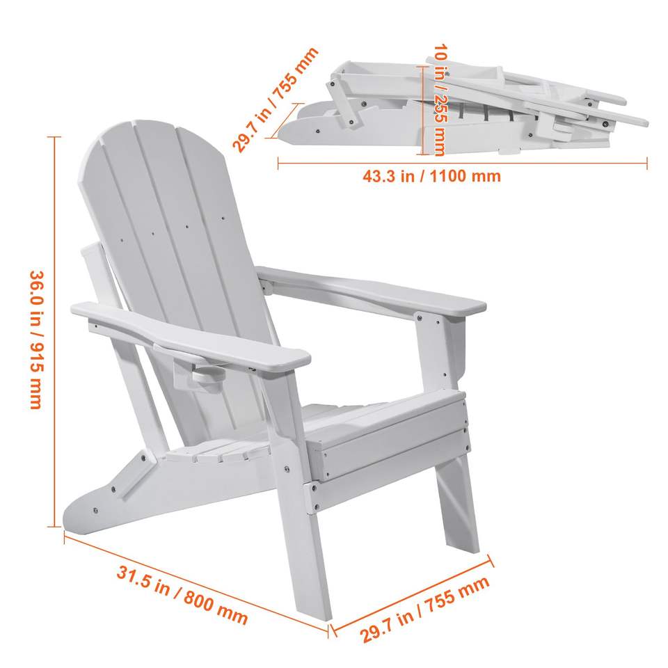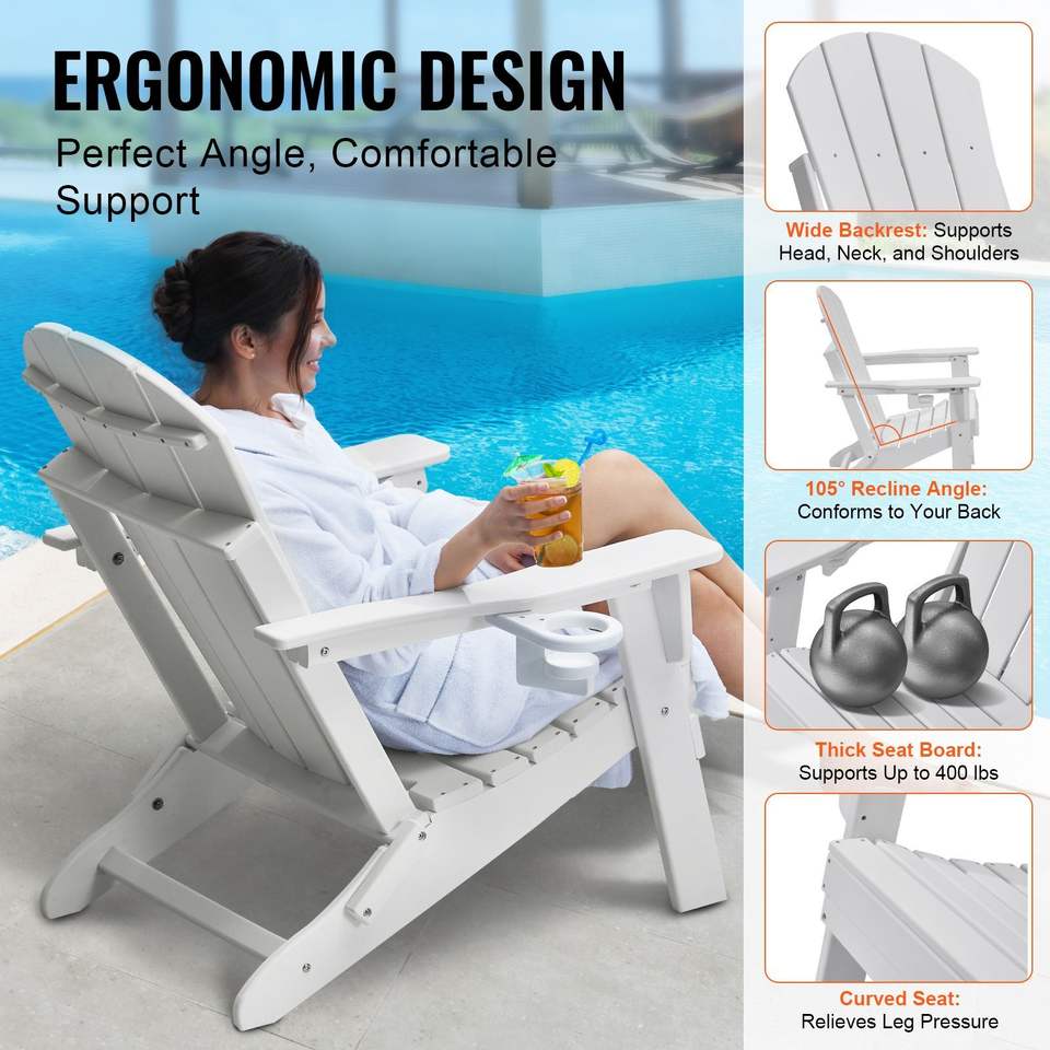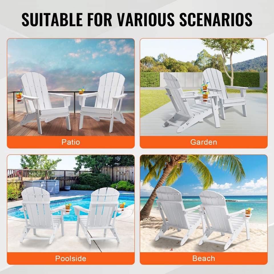Ensemble de 2 chaises Adirondack pliantes portables toutes saisons avec porte-gobelets pour foyer extérieur, chaises en plastique pour mobilier de patio