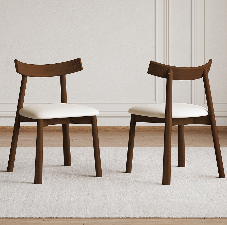 Ensemble de 2 chaises de salle à manger modernes avec cadre en bois massif, design ergonomique sans accoudoirs, coussins épais en PU, durables et écologiques pour la maison et l'hôtel