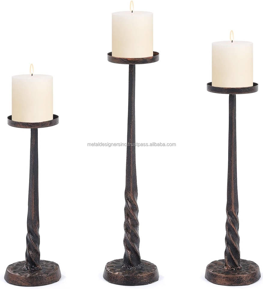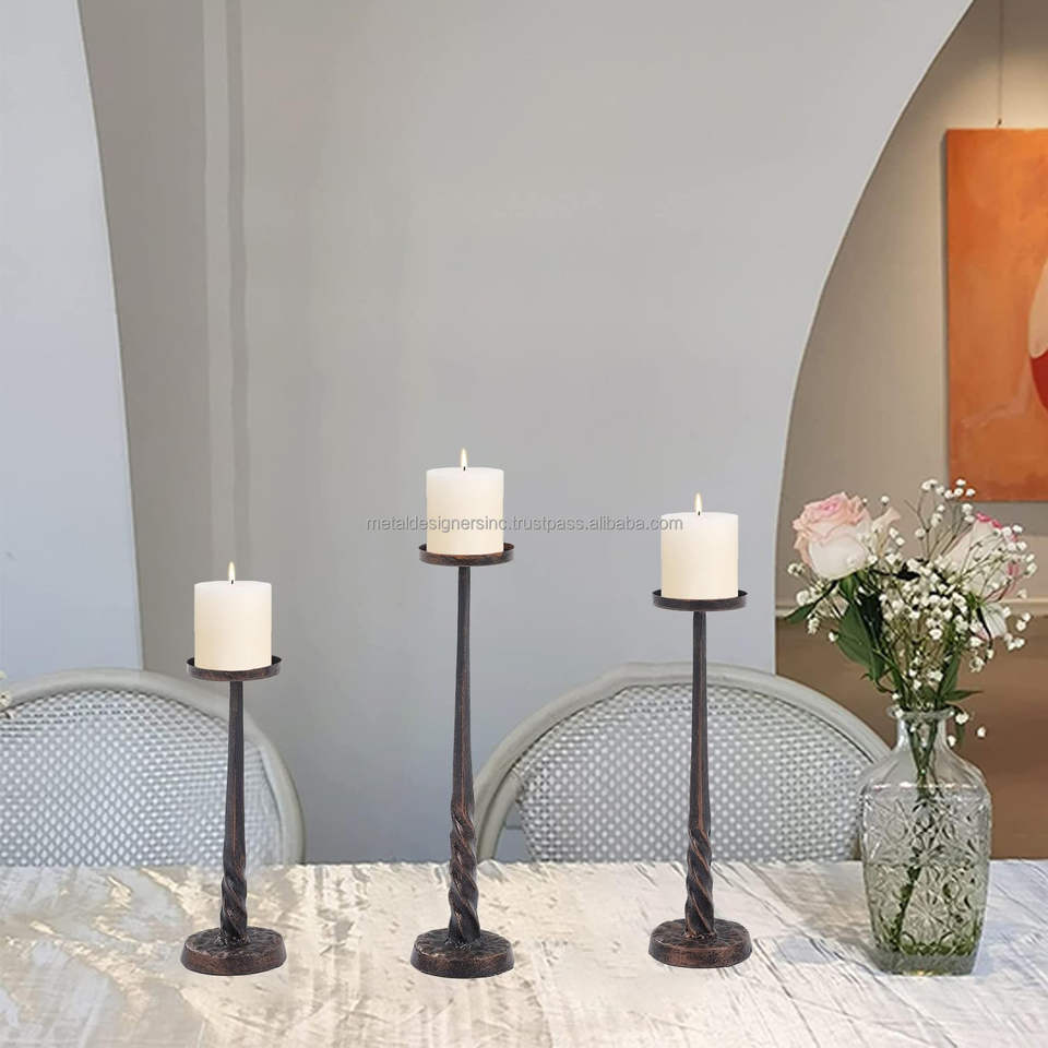 Ensemble de 3 bougeoirs en fonte de grande taille et antiques, bougies piliers, porte-bâton décoratif pour salle à manger, salon, décoration de Noël