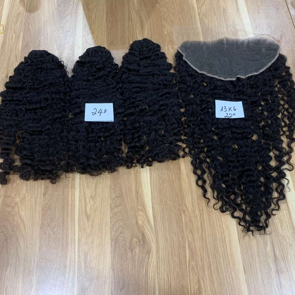 Ensemble de 3 faisceaux de 24 pouces avec un frontal 13x6 HD dentelle frontale Hot Top birman serré meilleure vente Texture noir naturel