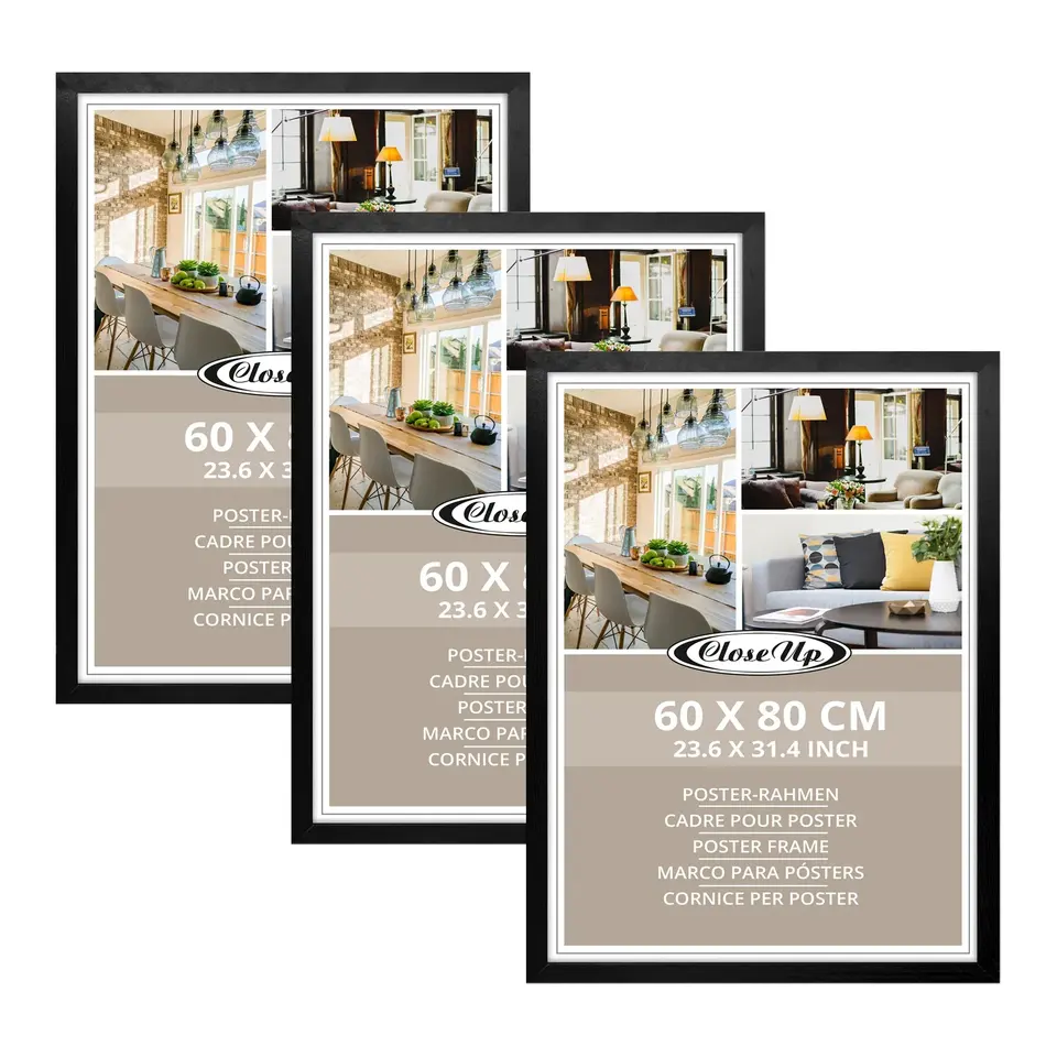 Lot de 3 cadres créatifs en bambou pour affiches 60 x 80 cm, décor en bois noir, motif carré, pour photos, tailles 8 x 10 et 11 x 14 disponibles