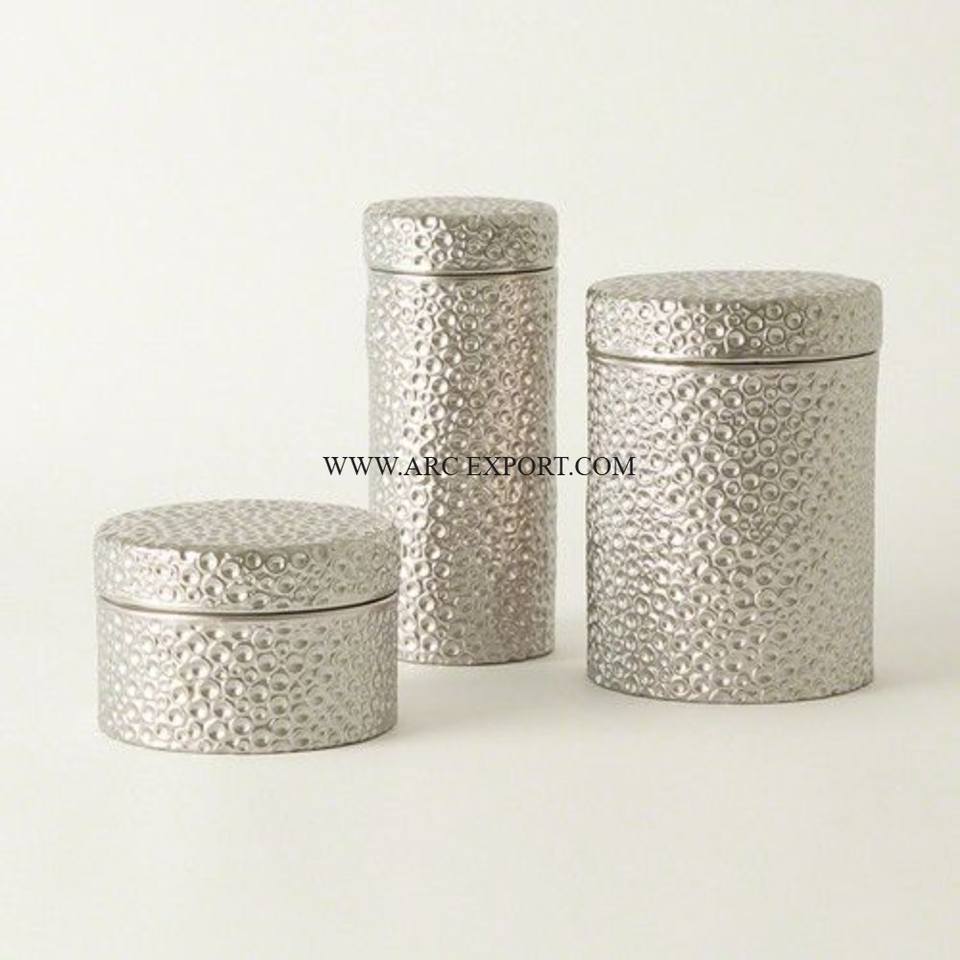 Ensemble de 3 Pots en fer-blanc en acier inoxydable poli miroir martelé de tailles différentes, pliables uniques, pour table décorative