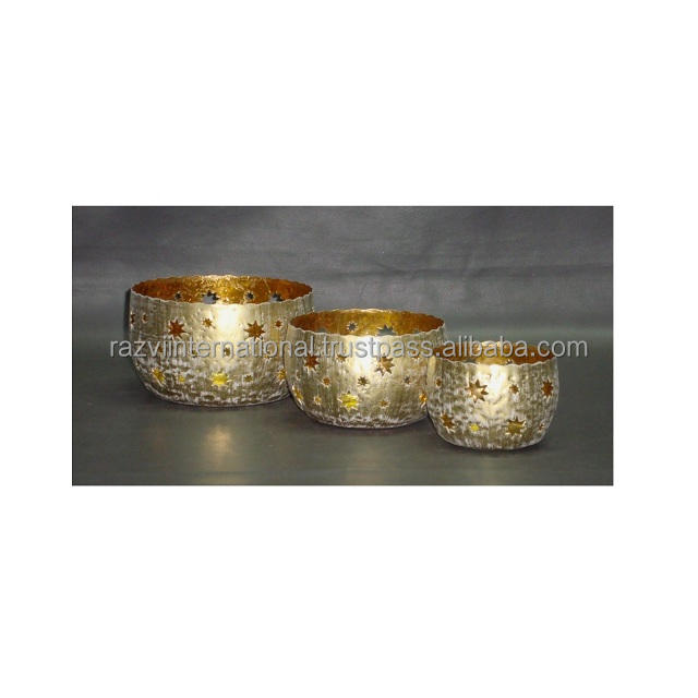 Ensemble de 3 porte-bougies votives en métal et fer, faits à la main, durables, écologiques, finition couleur antique, pour la décoration de la maison, occasions de Pâques