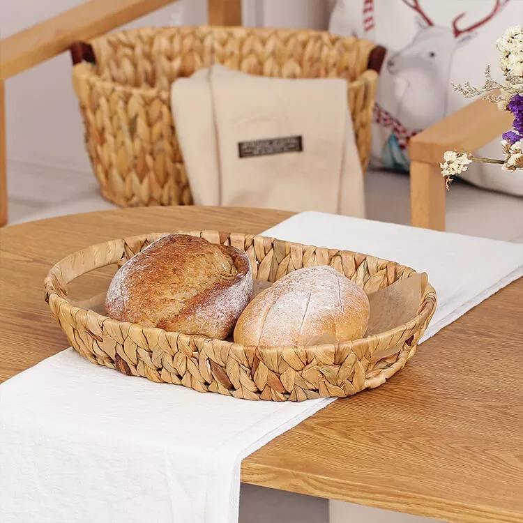 Ensemble 3 naturel tressé jacinthe d'eau pain alimentaire plateau de fruits panier à la main bambou panier de rangement jonc de mer désert plateaux de service