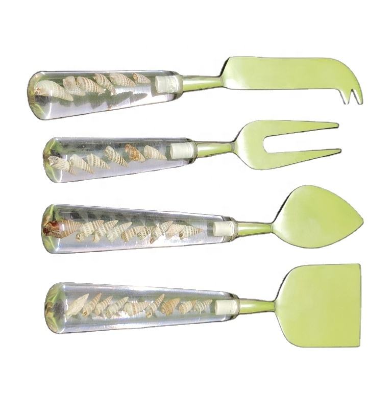 Set 4 High Quality Stainless Steel Cheese Spoons Bohemian Style Customized Colors Clear Epoxy Resin Shell Measuring Cheese Honey