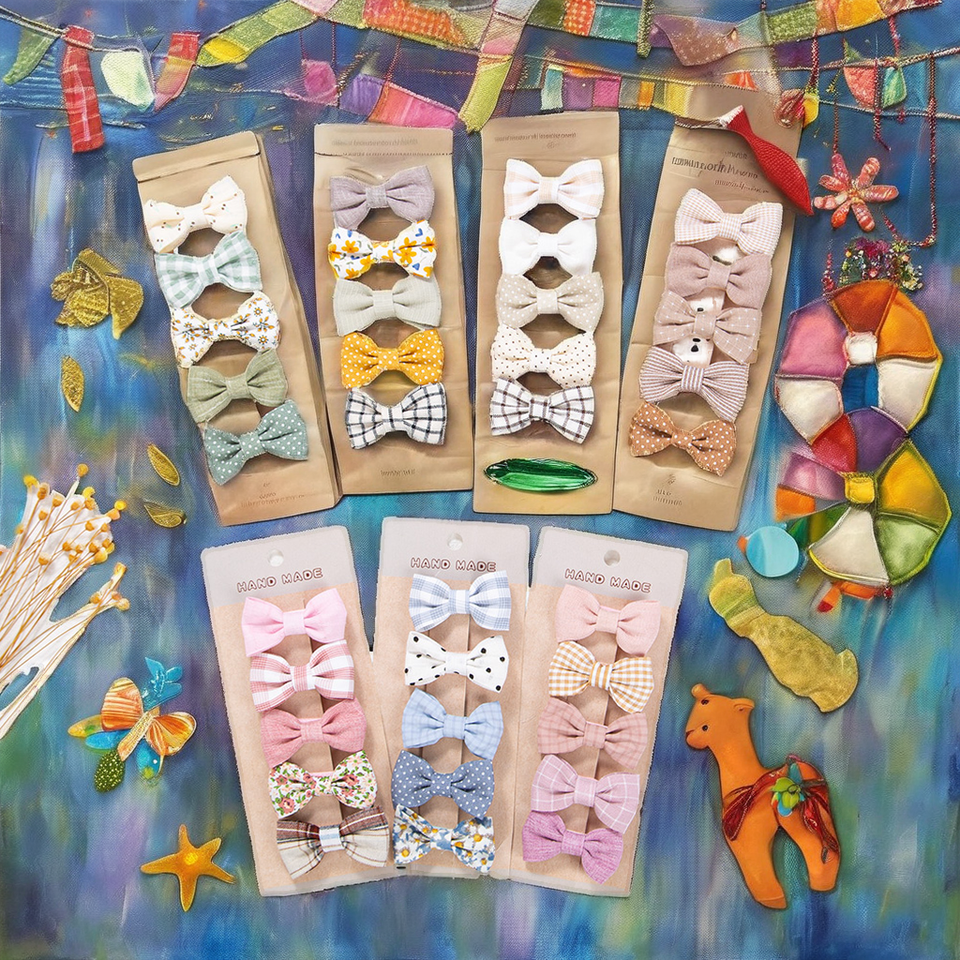 Ensemble de 5 épingles à cheveux à carreaux imprimé Froal mignon Couvre-chef pour enfants en alliage de perles Carton personnalisé pour les coupes de cheveux de bébés filles