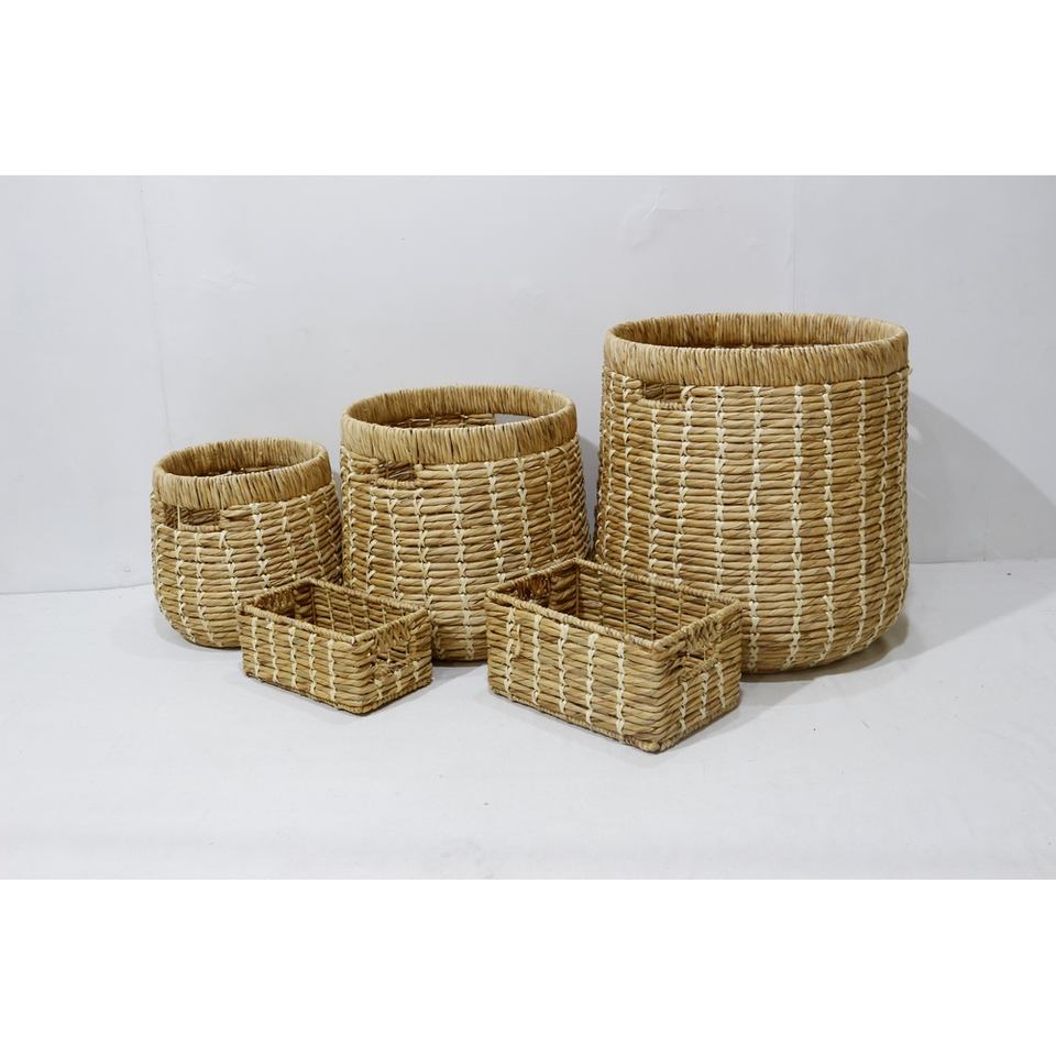 Lot de 5 paniers en jacinthe d'eau faits à la main de haute qualité-3 paniers 2 paniers corrects panier à linge pliable