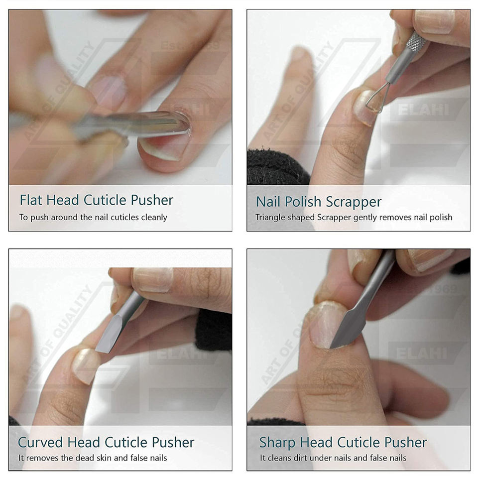 Set 5 outils de toilettage d'ongles professionnels en acier inoxydable de qualité salon pince à cuticules poussoir Cutter grattoir boîte à ciseaux incurvée