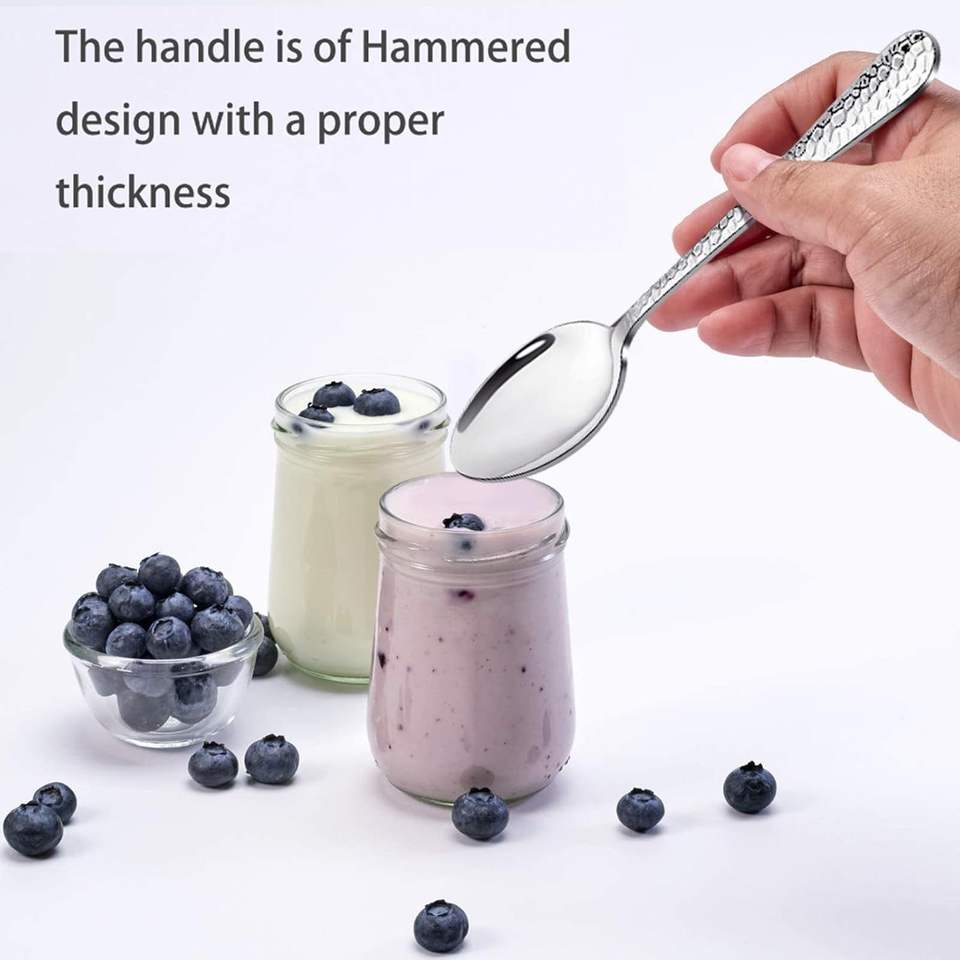 Lot de 6 cuillères à dessert modernes en acier inoxydable martelé, couverts pour la maison, la cuisine et le restaurant, vaisselle promotionnelle argentée