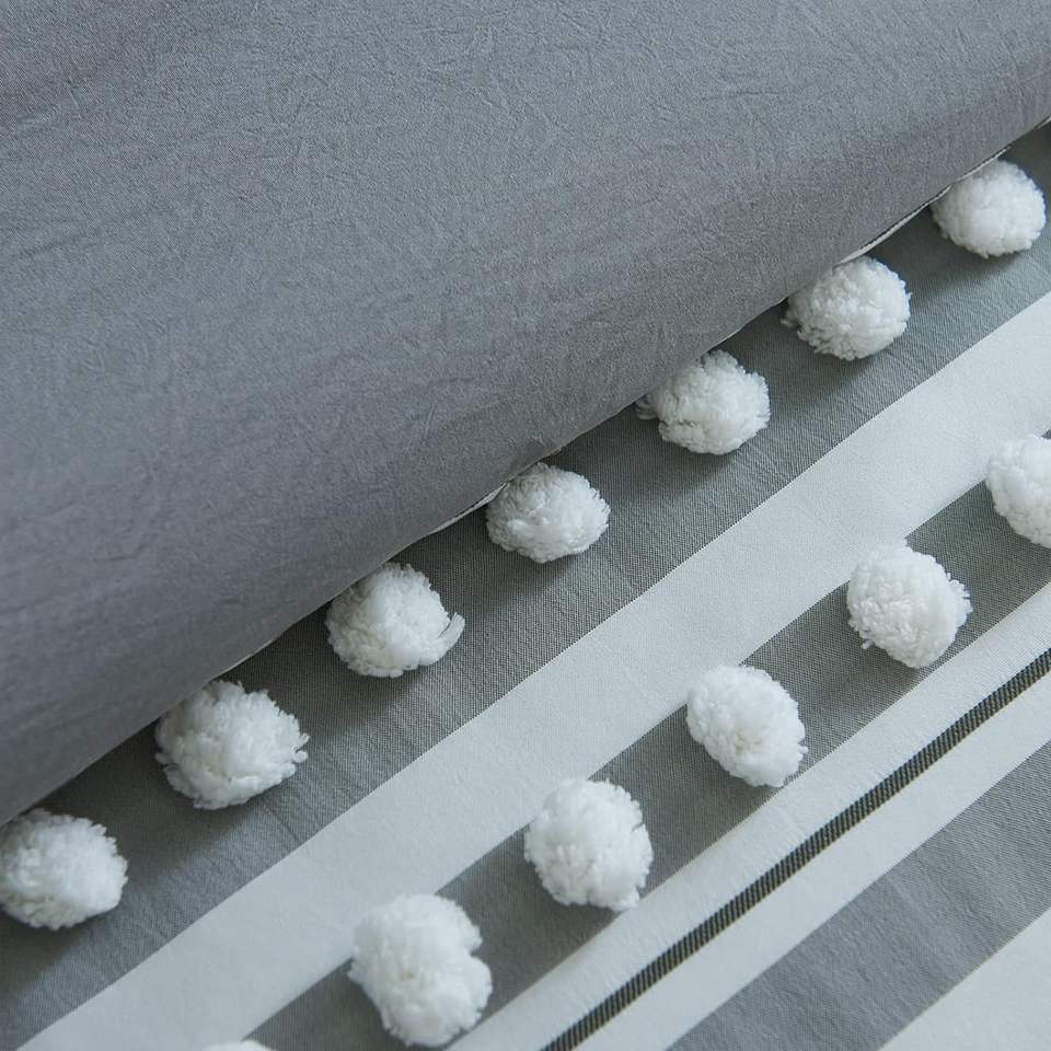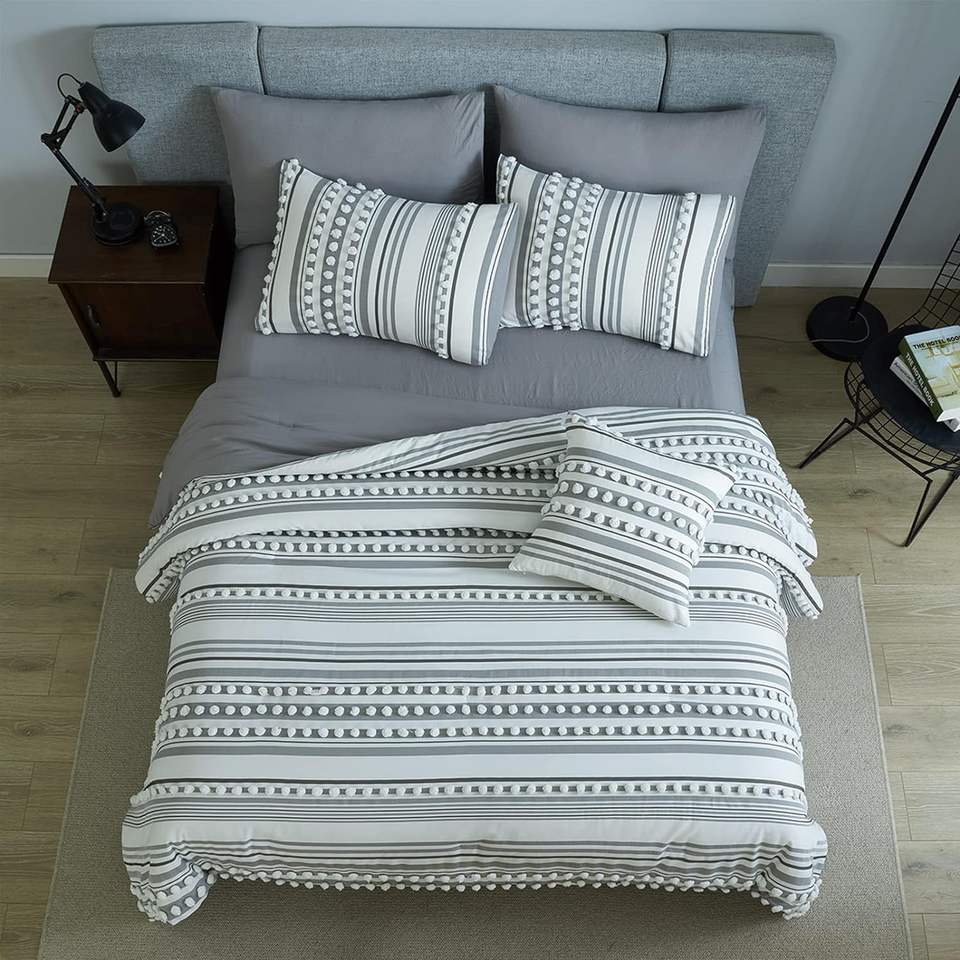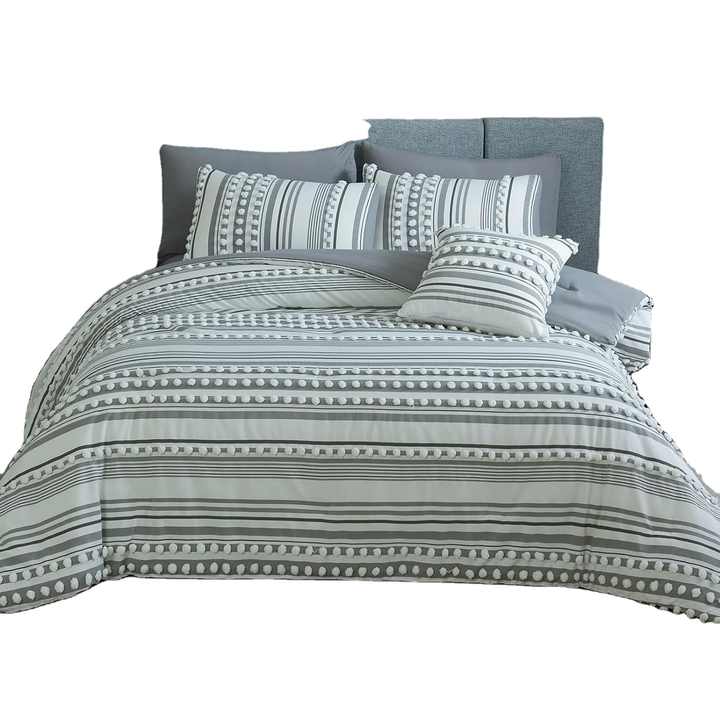 Ensemble de literie en microfibre douce et moelleuse pour toutes les saisons Ensembles complets de literie Tufted Pom Poms Balls Striped Design 8 pièces Boho Bed Comforter