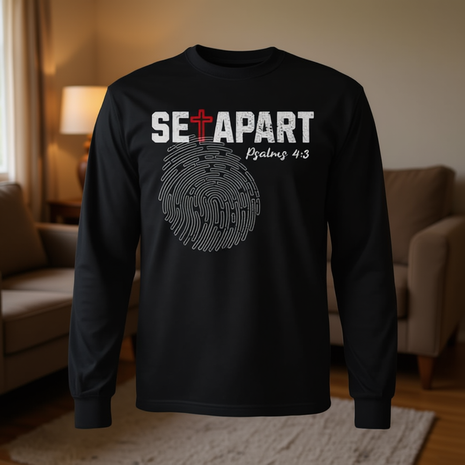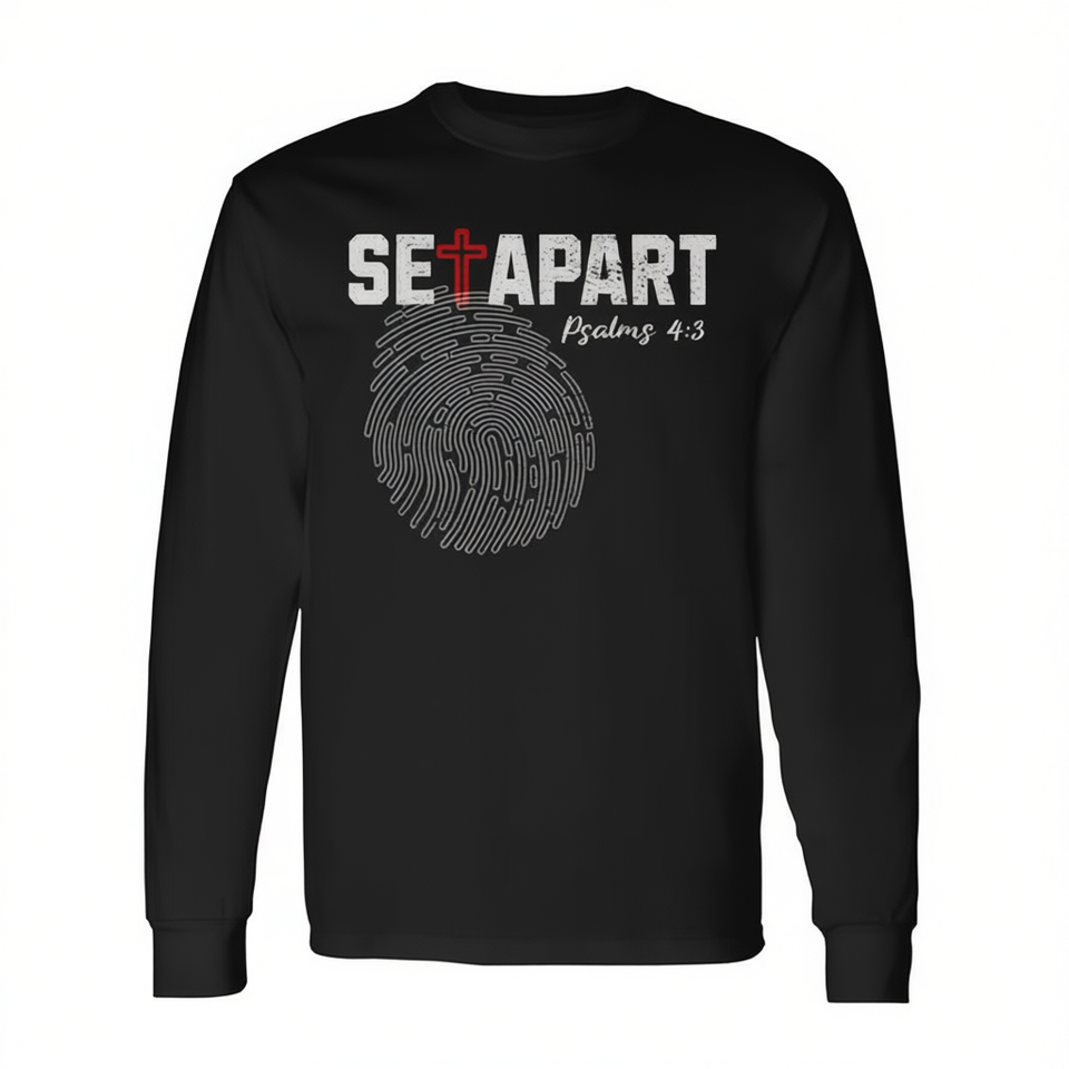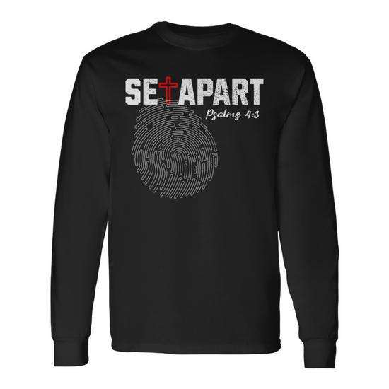 Set Apart Psalms 4 3 T-shirt à manches longues avec empreinte digitale de Jésus