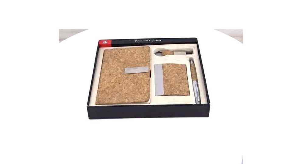 Ensemble cadeau d'entreprise avec carnet à finition liège, porte-cartes, porte-clés haut de gamme et stylo métallique – Cadeau exécutif