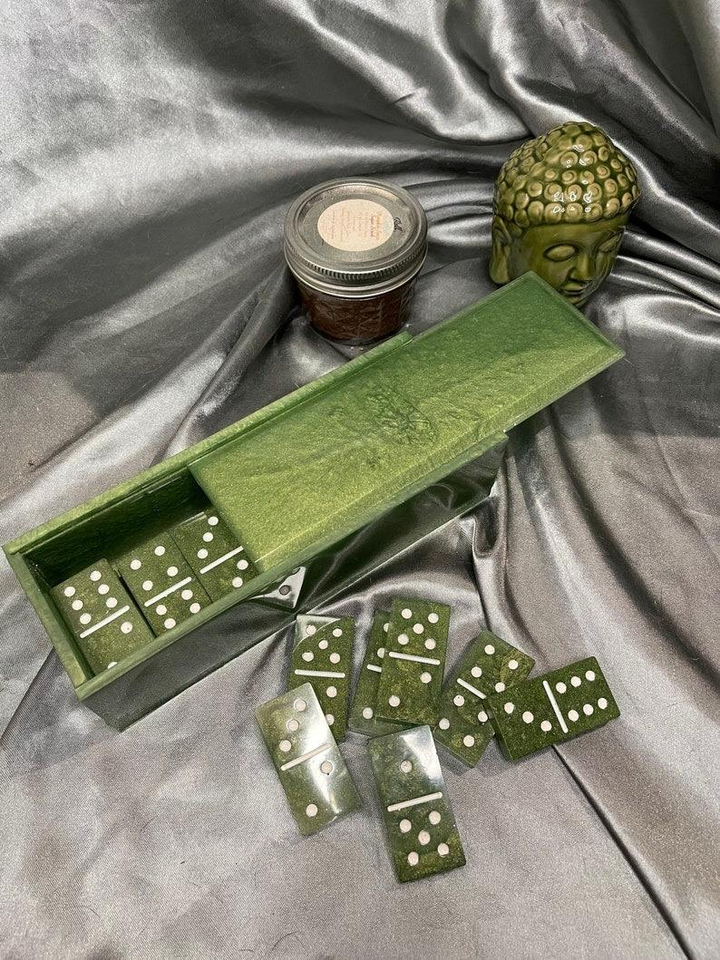 Jeu de dominos en résine écologique polie style animal – Collection de luxe faite à la main, durable et robuste, forme rectangulaire, idéal pour les fêtes
