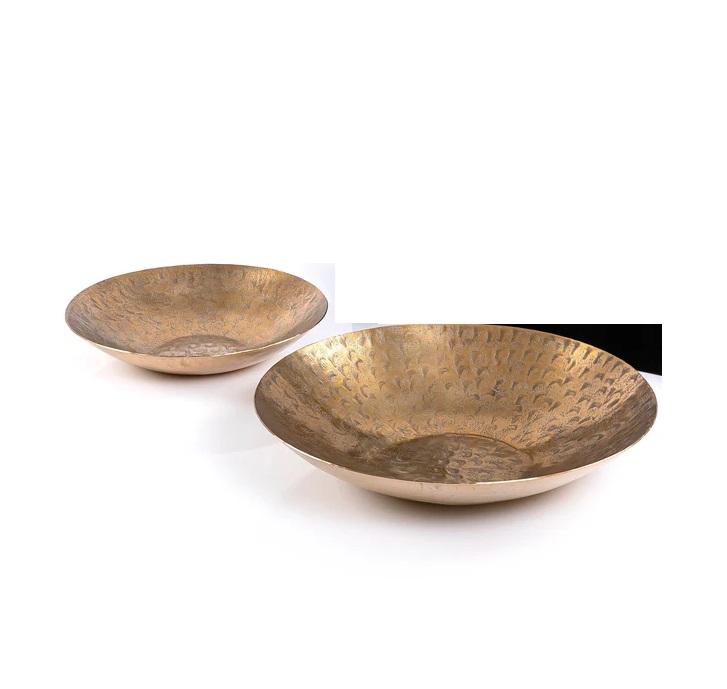 (Lot de 2) Bol de service à chocolat en aluminium plaqué or clair avec intérieur simple et extérieur fait à la main