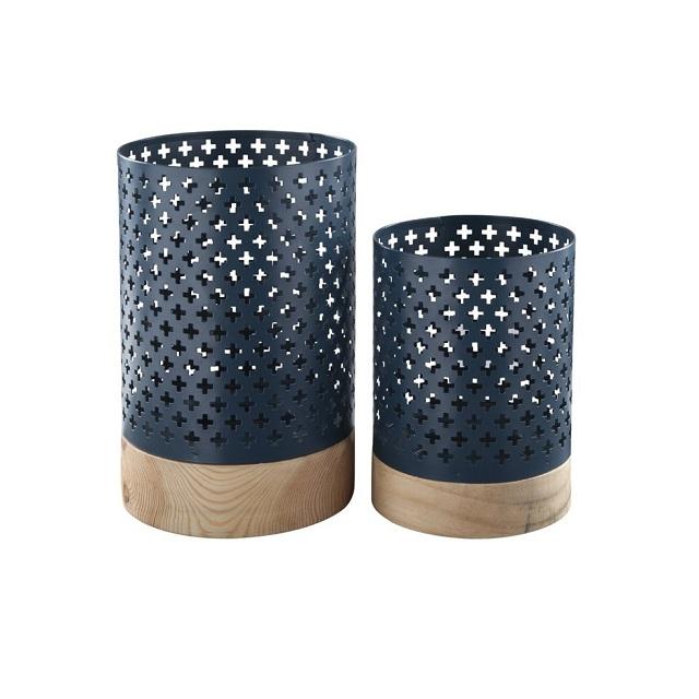 Lot de 2 bougies votives de couleur bleue en fer de différentes tailles avec socle en bois bougie photophore votive pour vente chaude