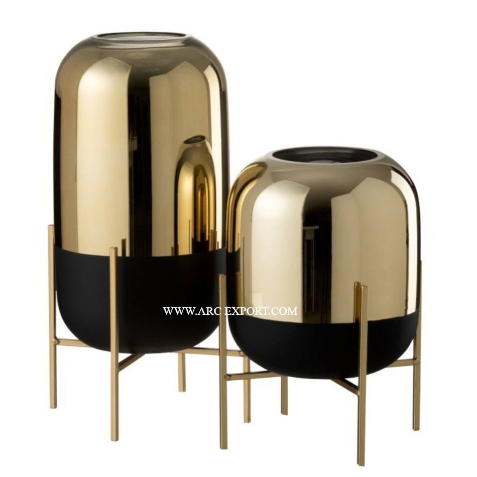 Ensemble de 2 jardinières et pots de fleurs métalliques d'intérieur de différentes tailles Planteur de décoration de fleurs de balcon de forme ronde de la plus grande qualité