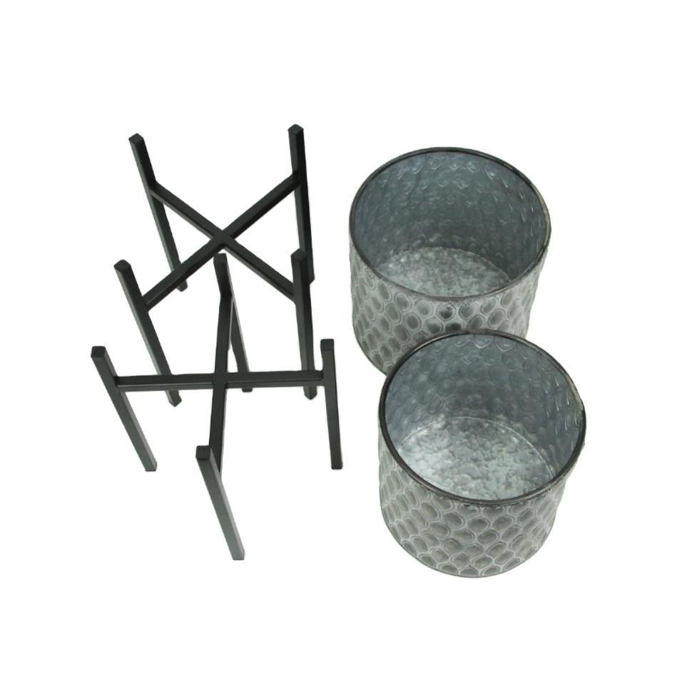 Ensemble de 2 jardinières en métal galvanisé à motif de feuilles, avec supports en fer, style farmhouse, pour intérieur/extérieur, maison et jardin