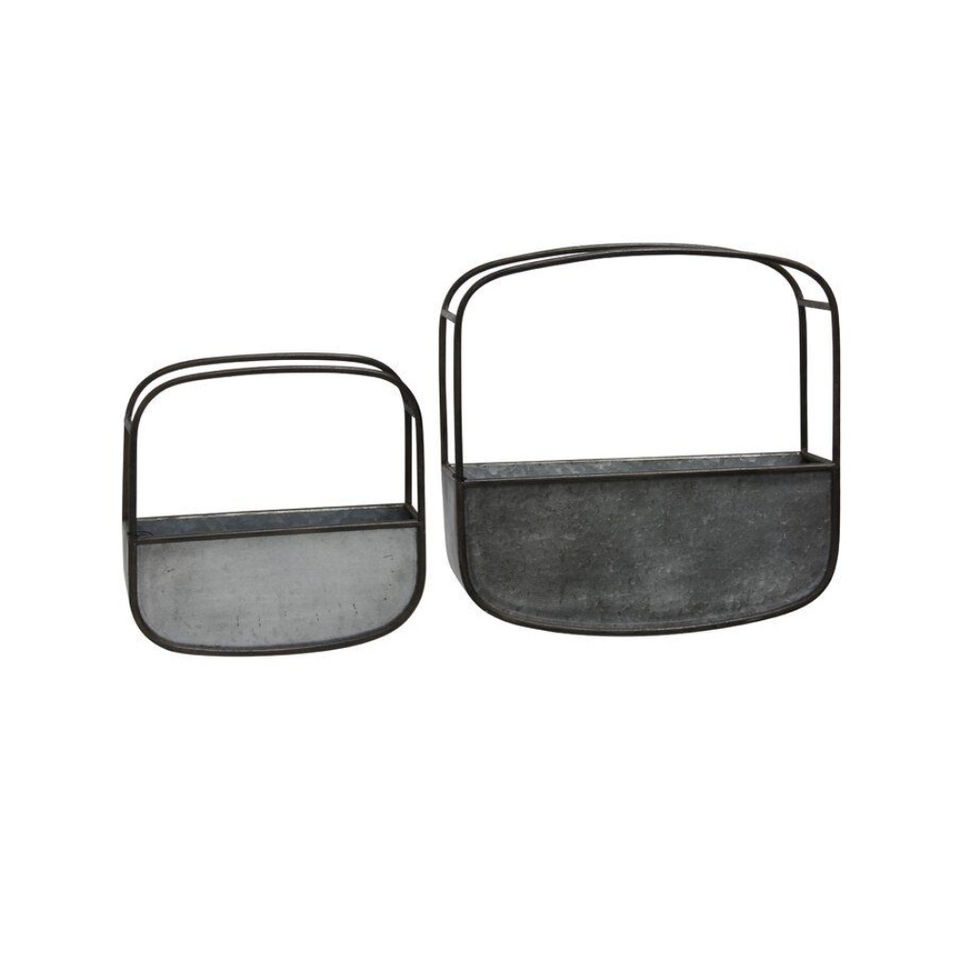 Ensemble de 2 jardinières suspendues en métal galvanisé gris, demi-rondes, murales, pour intérieur/extérieur, style farmhouse, décoratives, pour balcon, jardin