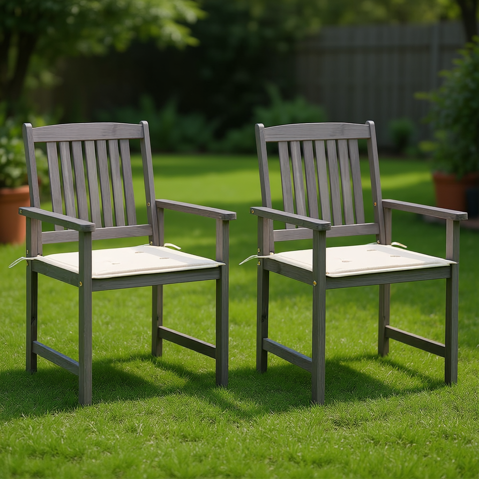 Ensemble de 2 chaises de jardin en bois d'acacia massif gris, taille moyenne, meubles d'extérieur durables, design traditionnel, pieds effilés