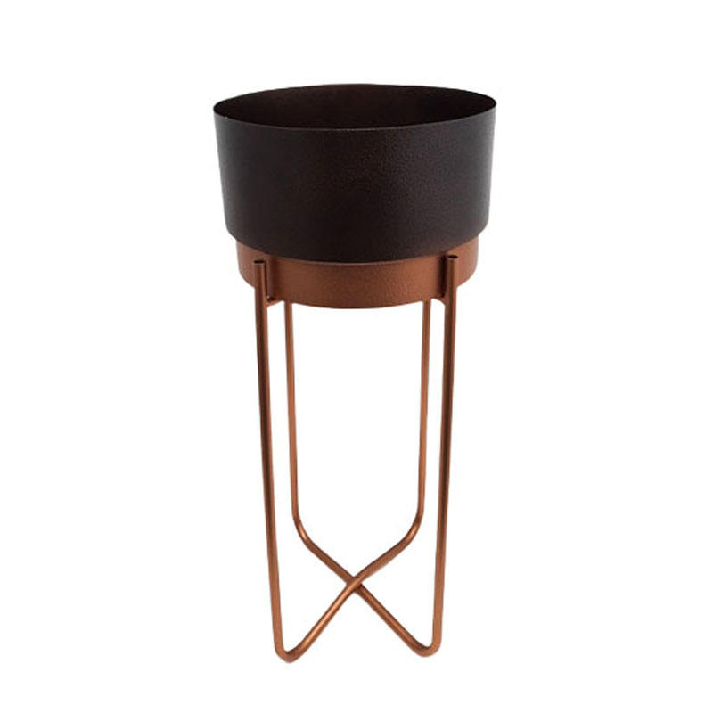 Lot de 2 jardinières rondes martelées avec support en métal grande couleur marron pour jardin et maison salon salle à manger décorations