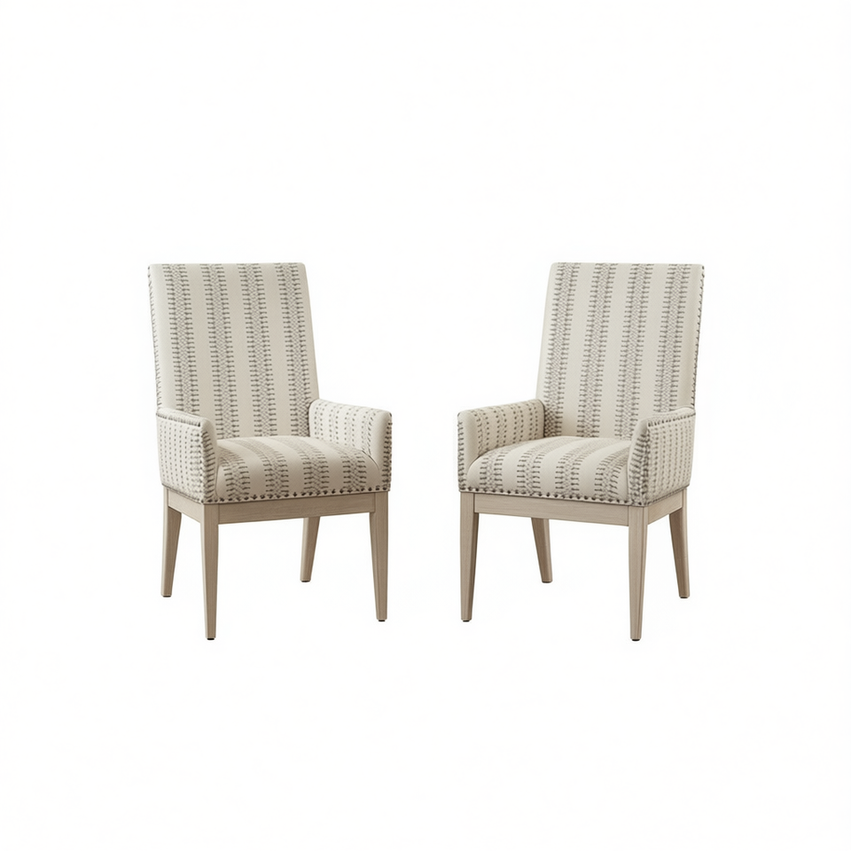 Ensemble de 2 fauteuils de salle à manger à dossier haut, modèle D0100HX38MP, pieds en bois recouverts de tissu, design contemporain