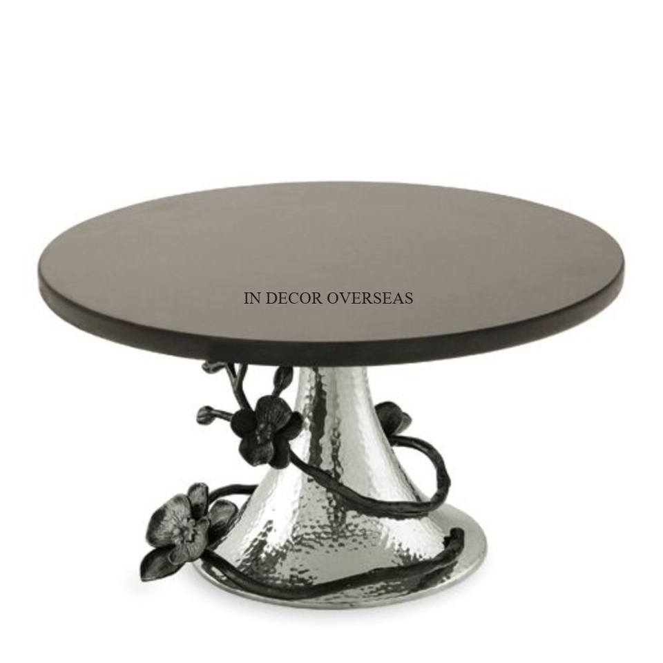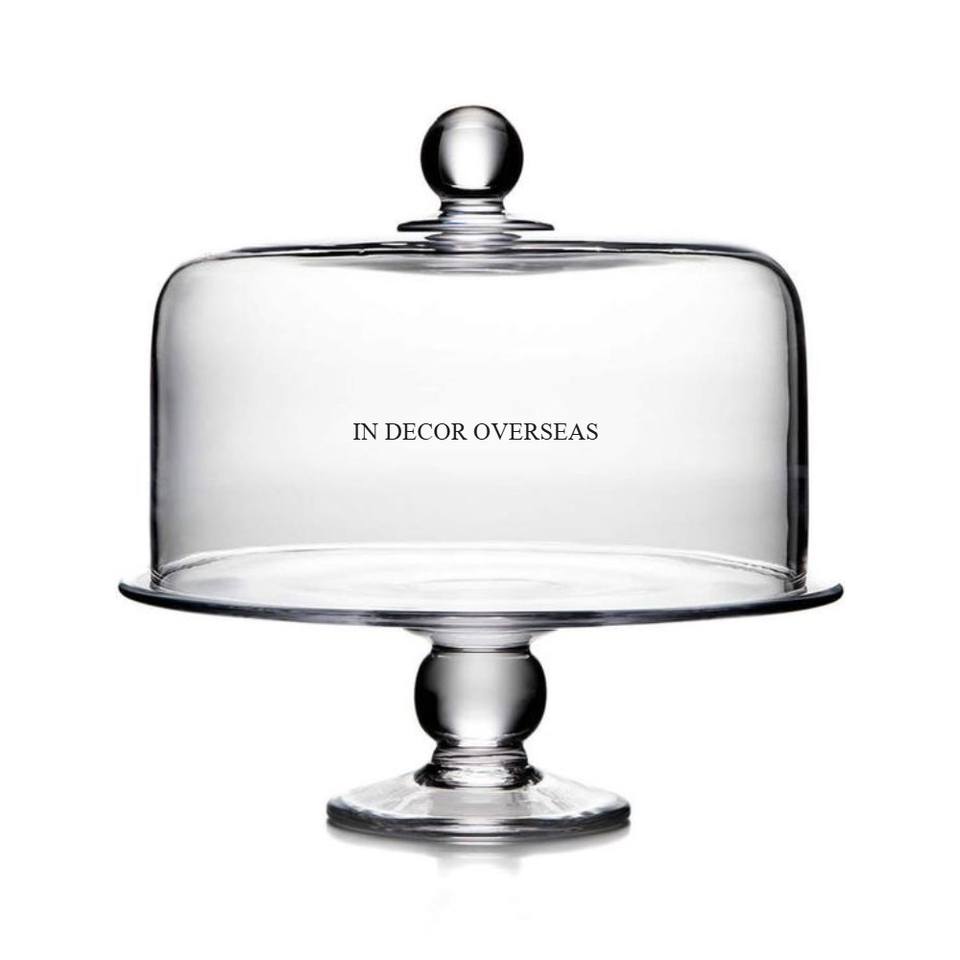 Ensemble de 2 supports à gâteaux de haute qualité en métal argenté brillant poli et plaqué or avec couvercle supérieur en verre transparent de l'Inde
