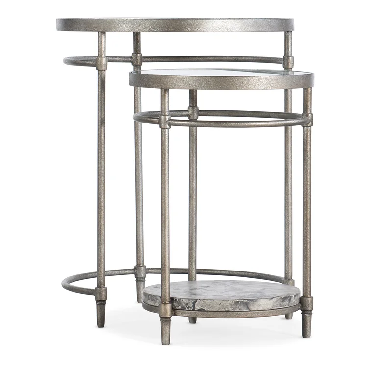Set of 2 Modern Eco-Friendly Silver Metal Coffee Tables with Glass Tops Round Shape Customizable Color & Size