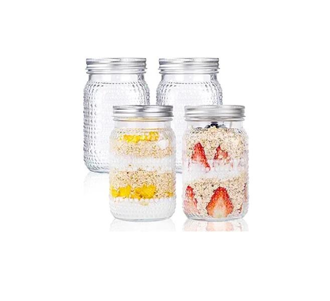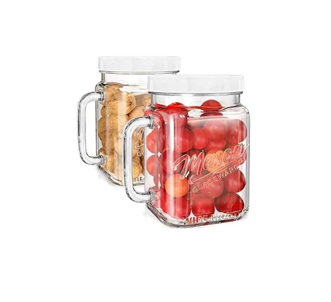 Ensemble de 2 pots en verre transparent avec couvercles et anneaux, utilisés pour la mise en conserve, la préparation de cornichons, les jus, les confitures, la gelée, taille quart (32 onces)