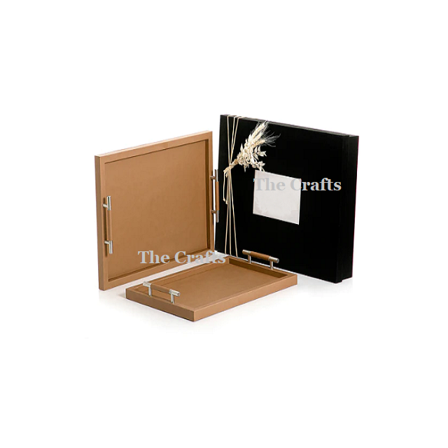 Lot de deux plateaux de service à chocolats rectangulaires en bois et cuir à des prix abordables