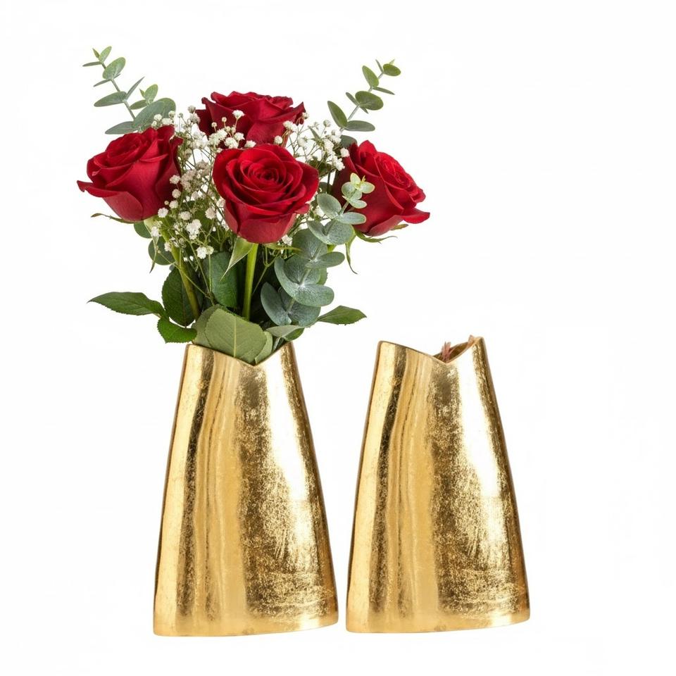 Ensemble de 2 vases de table en métal texturé, vase à fleurs en aluminium doré pour la maison, le salon, la décoration de mariage et vase à fleurs élégant